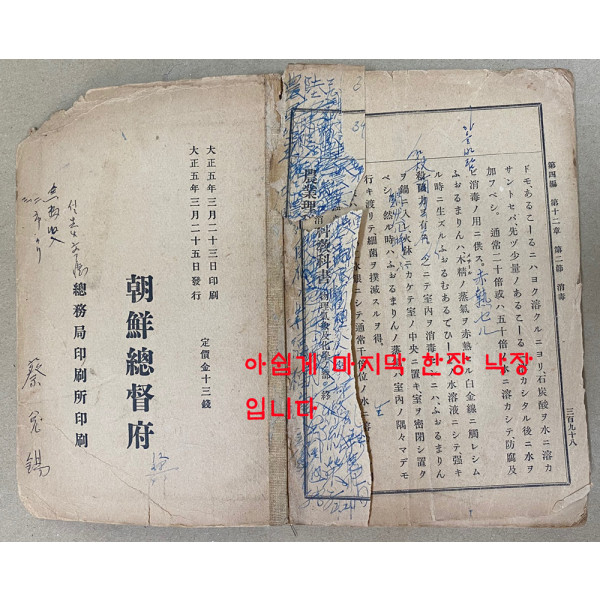 마지막장 한장 낙장 일본어로 되어있고