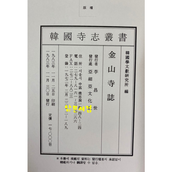 한국사지총서 금산사지 1983년 초간본
