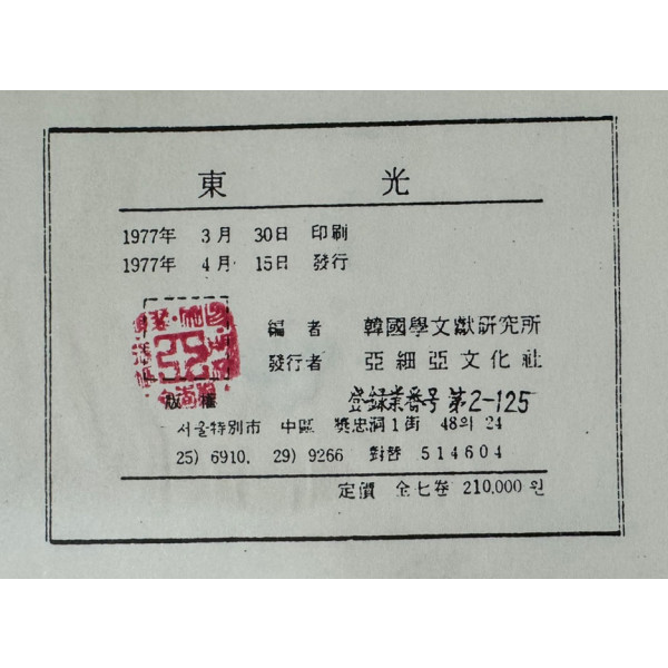 1977년 아세아문화사 영인
