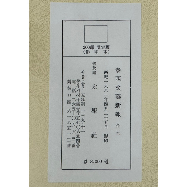 태서문예신보 창간호부터 16호까지 단권 200부 한정판 영인본 / 1981년 태학사 영인본