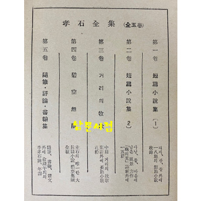 도서명 이효석전집 효석전집 1~5 전5권 완질 성음사판