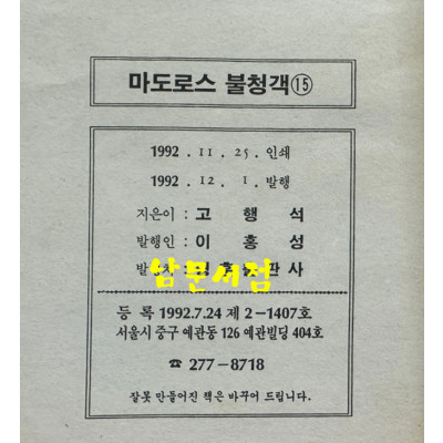 만화 특성상 반품 절대 안됩니다.